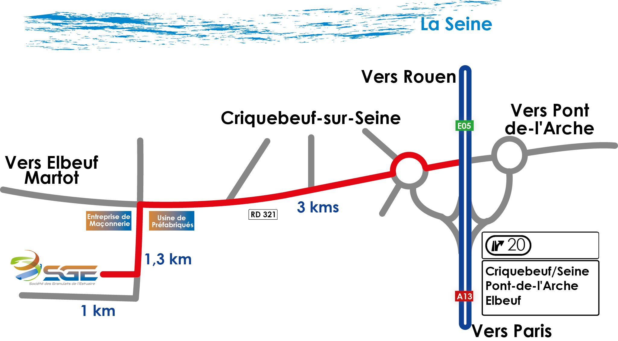 SGE est implantée sur les communes de Martot et Criquebeuf (27) depuis plus de 50 ans. Elle y exploite un gisement de haute terrasse de sables et de graviers.